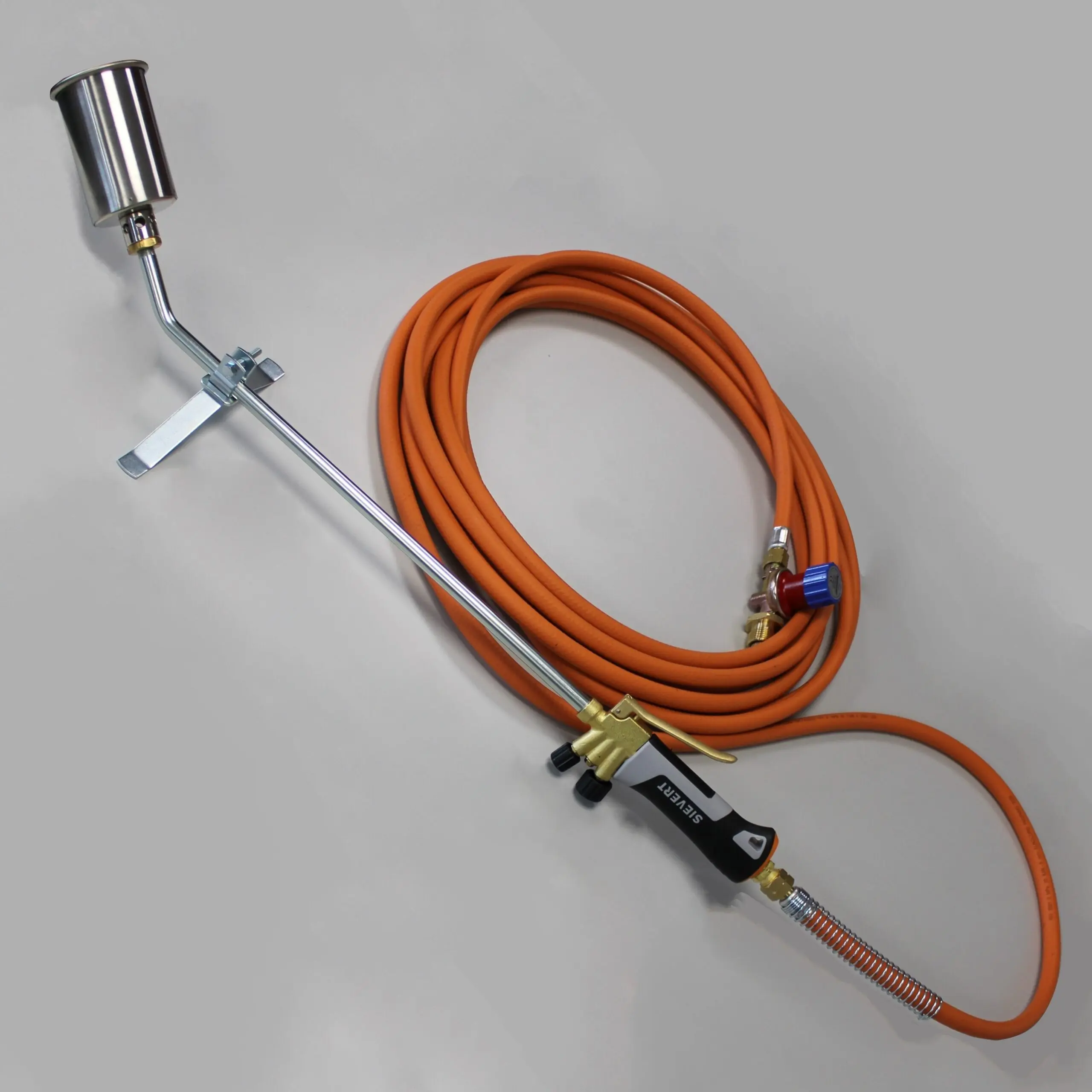 The Sievert Area Roofing Torch with hose and regulator comes with a 480mm neck tube and 60mm burner head. Complete and ready to use, it is ideal for working on large areas of bituminous membrane application. With a heavy-duty but lightweight power burner and extremely strong and windproof flames, it can withstand all weather conditions.